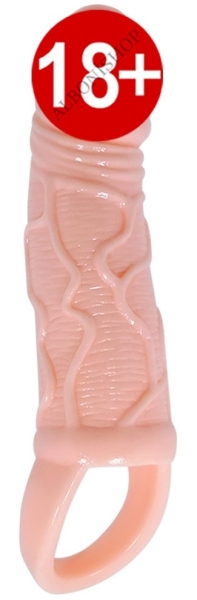 Titreşimli 5 cm Dolgulu Uzatmalı Ten Rengi Penis Kılıfı