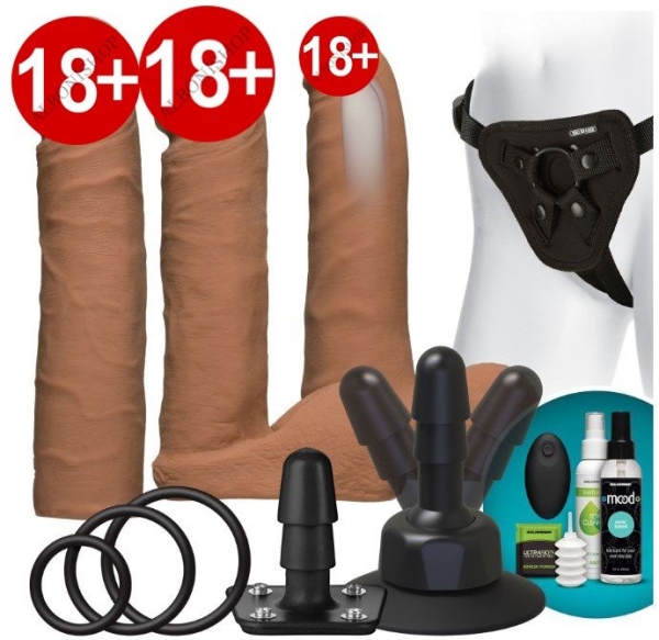 Vibr Dual Density UltraSkyn Belden Bağlamalı Titreşimli Penis Seti - Karamel