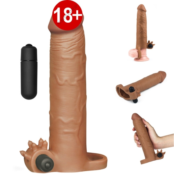 X-TENDER Realistik Titreşimli 7.5 Cm Uzatmalı Penis Kılıfı-LV1065B