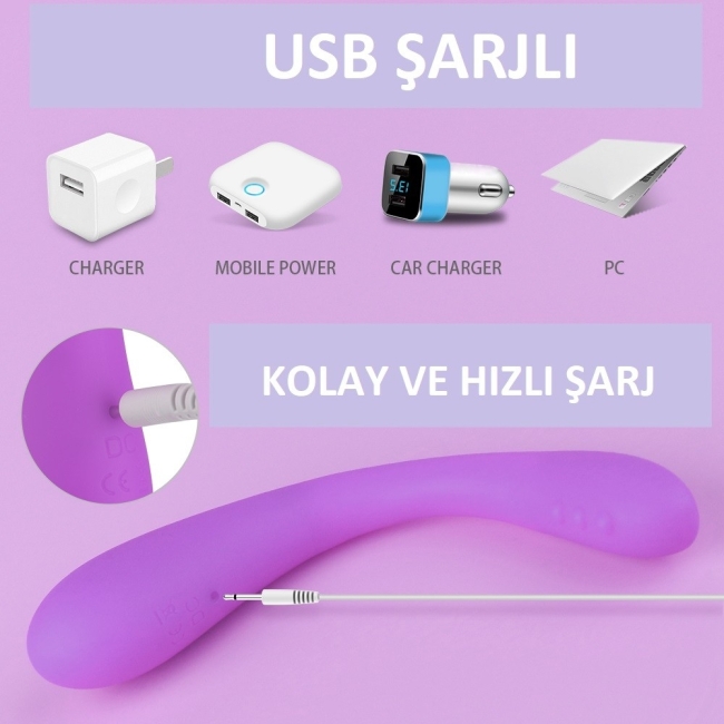 - Klitoris ve vajinal uyarımı birlikte sağlayacak özel şekilli tasarım
