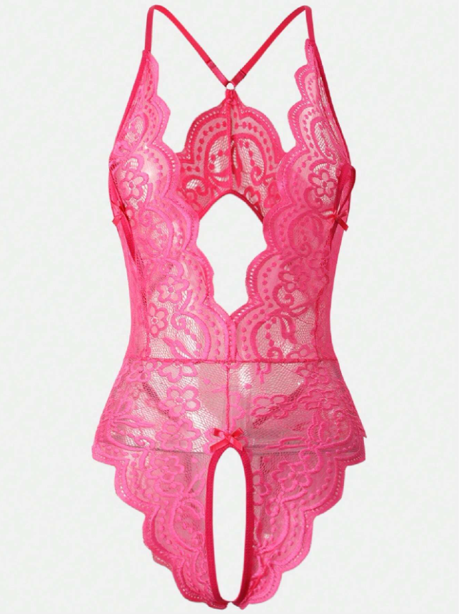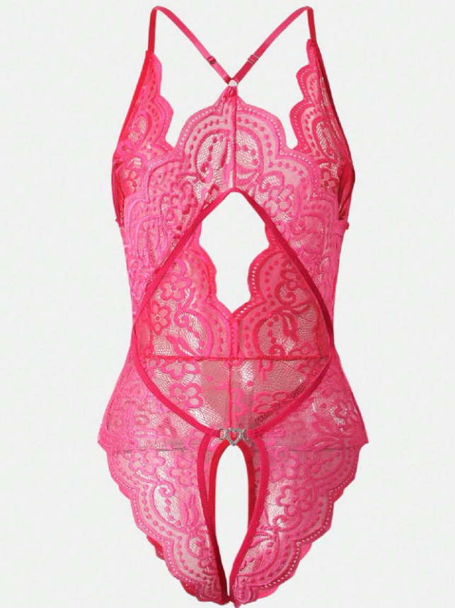Şıklık ve cesareti tek parçada bir araya getiren bu dantelli Fuşya bodysuit, özel tasarımıyla vücut hatlarını zarif şekilde ön plana çıkartır. Halter yaka yapısı sayesinde boyun ve dekolte bölgesini etkileyici biçimde ortaya çıkarırken, transparan dantel dokusu feminen bir görünüm sunar. Ön ve alt kısmındaki özel açıklık detayı, tasarıma farklı ve çekici bir hava katar.