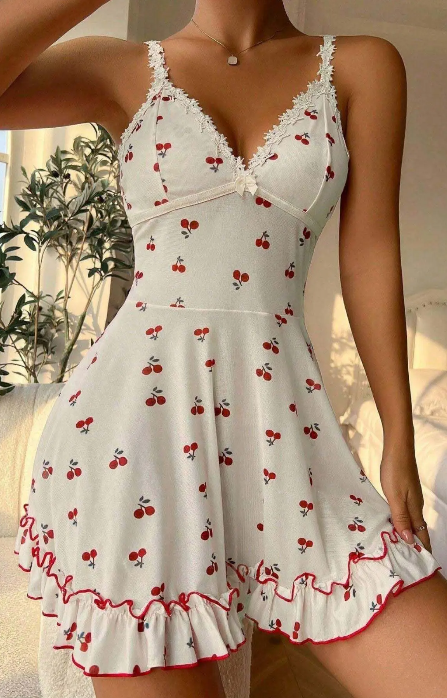 Günün vazgeçilmezi olacak bu şık ve zarif kadın gecelik, hem konforu hem de estetik görünümü bir arada sunar. Hafif ve nefes alabilen kumaşı sayesinde gün boyu rahatlık sağlarken, kiraz desenli sevimli tasarımı ile feminen ve çekici bir stil oluşturur.