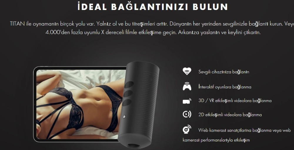 - Bir sonraki seviye solo seanslar için 'Teledildonic' interaktif TITAN erkek masturbator