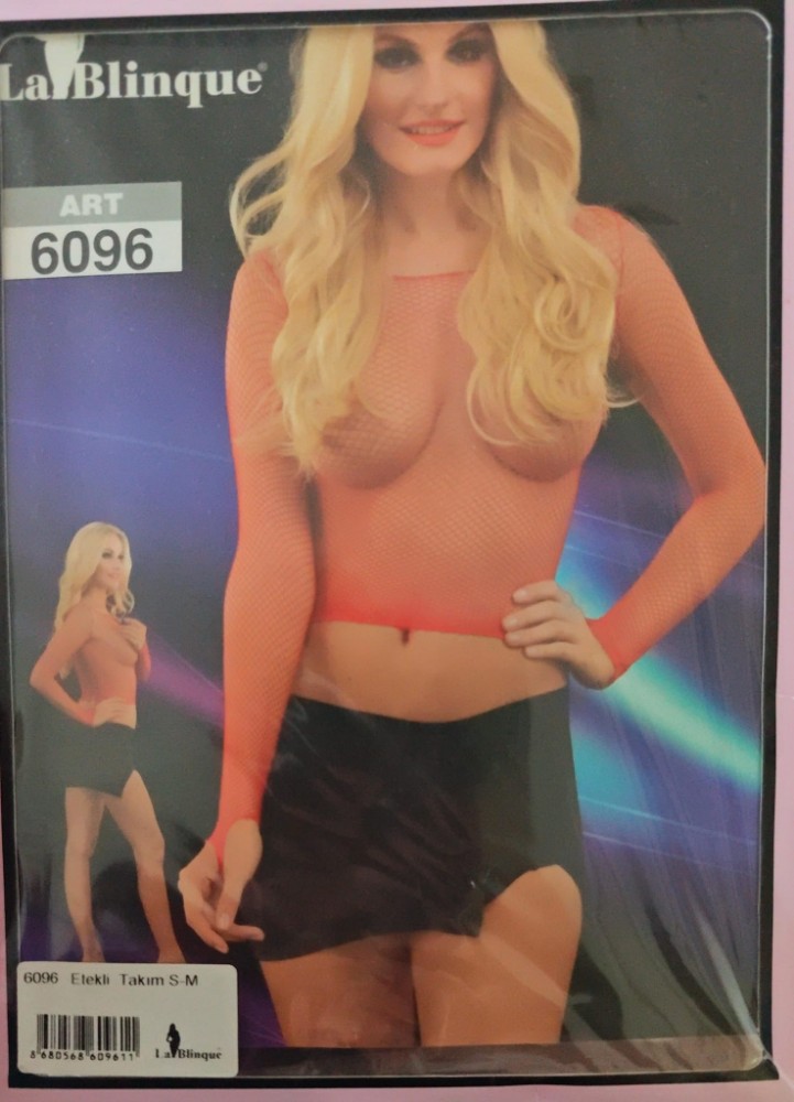 La Blinque Art 6096 Kırmızı File Üst Siyah Mini Etek Takımı
