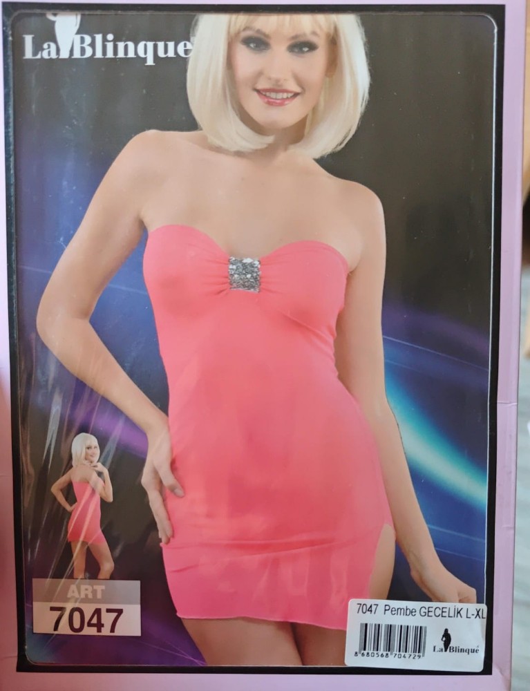 La Blinque Art 7047 Pembe Straplez Tül Gecelik Taş Detaylı