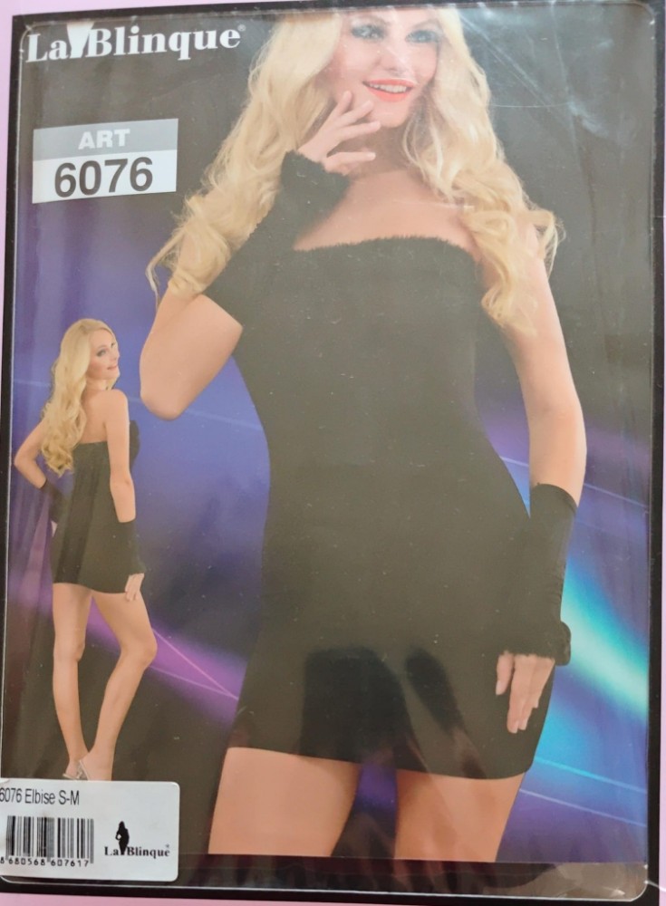 La Blinque Art 6076 Siyah Straplez Mini Elbise Eldivenli
