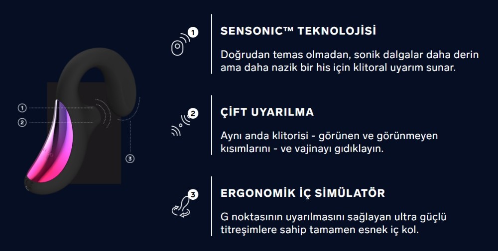 - Zevkinizi iki katına çıkarmak için sonik dalgaları yumuşak darbelerle birleştirir