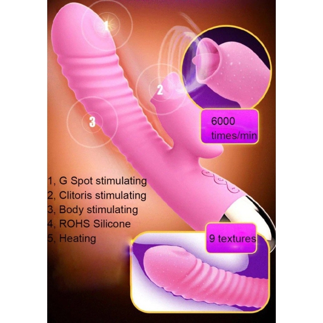Bu titreşimli vibratör, klitorisinizi gıdıklayacak 7 benzersiz yalama dil fonksiyonuna sahiptir. Güçlü Titreşim, ısıtma ve çılgın bir işlev gibi, dil yalama özellikli. Silikon malzemeden, yumuşak dokunuşlu, esnek, güvenli ve kullanımı rahattır. Oyuncak dahili lityum pil içerir ve ayrıca kullanımı kolay USB şarj ile şarj edilir. Kadınların doruğa ulaşması için tasarlandı, siz veya sevgiliniz için harika bir seks oyuncağı.Aynı anda hem g bölgesi uyarırken hemde klitorisinize dil hareketi yaparak doruk noktanıza kolayca ulaşmanızı sağlar memnun eder.
