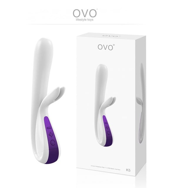 Yuvarlak takılabilir ucu ve çift klitoris uyarıcısıyla bu Ovo K5 Tavşan Vibratör Beyaz/Mor her kadını keyiflendirebilir.