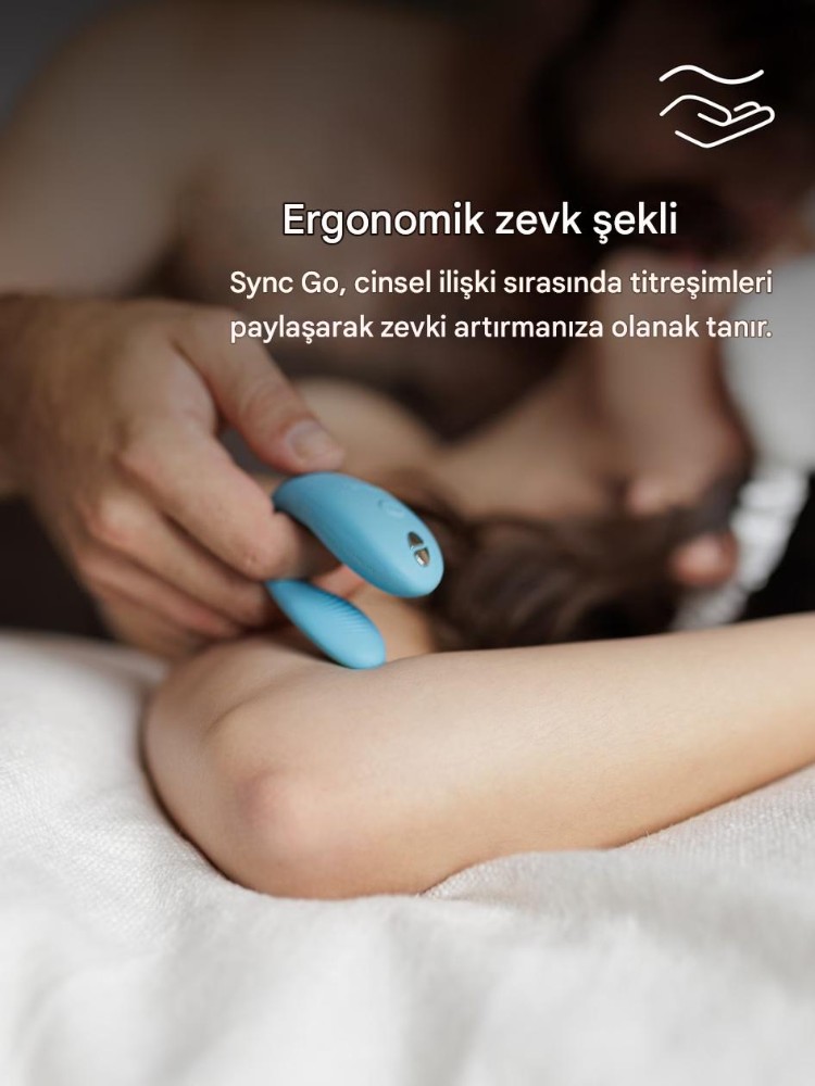 Sync Go, çiftlerin sırasında eller serbest, ortak titreşimler deneyimlemelerini sağlamak için tasarlanmıştır. Maksimum zevk, maksimum konfor. Sync Go, ücretsiz We-Vibe uygulamasıyla kontrol edilebilir ve telefon ekranınıza dokunarak ayarları, hatta uzun mesafelerden bile değiştirebilirsiniz. Sync Go ayrıca oyuncak üzerinde basit, tek düğmeli kontrollere sahiptir.