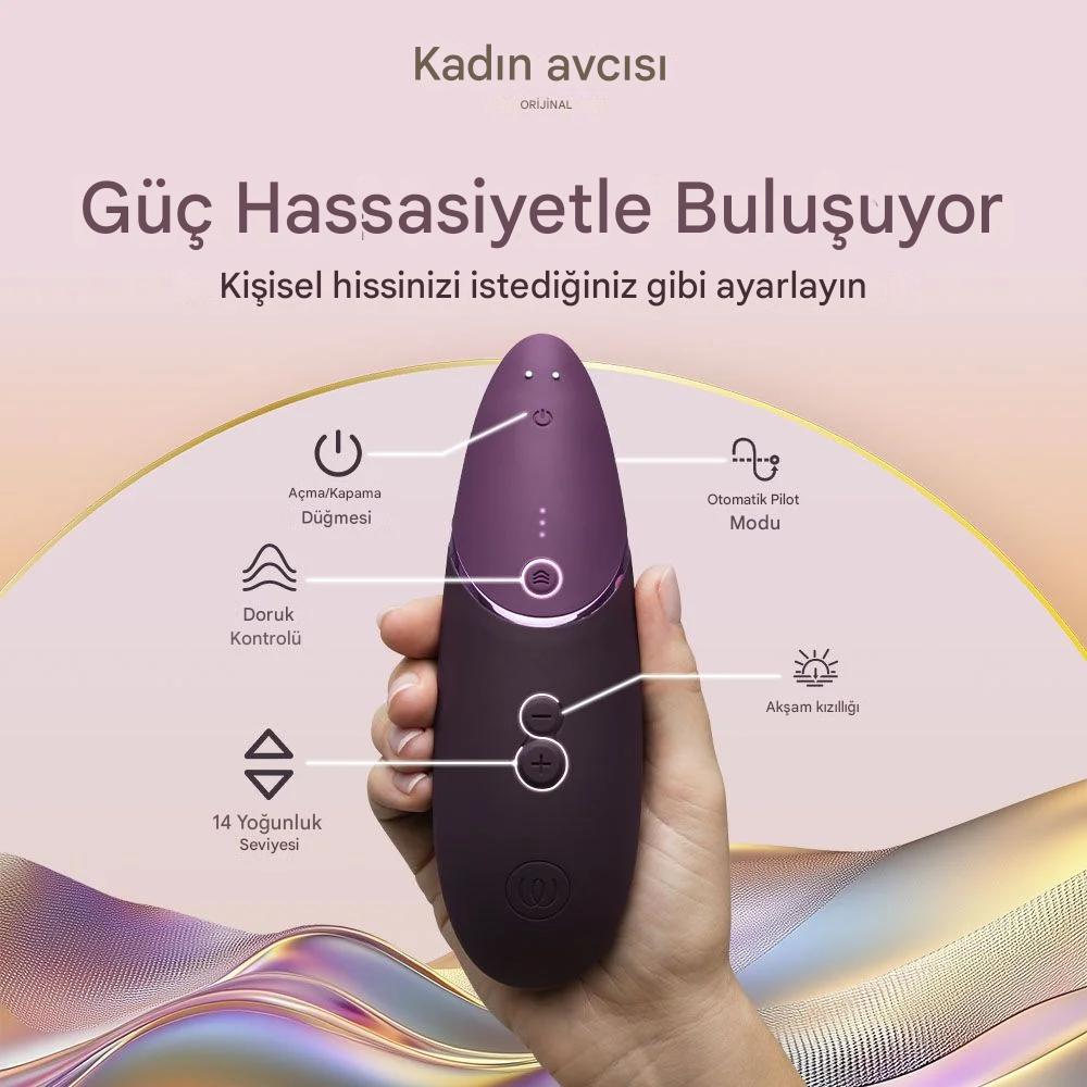 Womanizer Next, özelleştirilebilir derinlik seviyeleri ve fısıltı kadar sessiz performansıyla çoklu orgazmlar için daha derin, daha doğal bir uyarım sağlar. 14 Yoğunluk seviyesi - İster yumuşak ve nazik, ister güçlü ve yoğun, isterse ikisinin arasında bir şey tercih edin - bir sonraki orgazmınız sadece bir düğmeye basmanızla mümkün. Yoğunluk seviyeleri mükemmel bir şekilde dengelenmiş olup her ruh halinize uygun bir ortam sunar. Doruk Kontrolü - Yeni Climax Control özelliği, orijinal Pleasure Air uyarımımızı yepyeni bir 3D boyuta taşıyarak daha derin ve zengin bir his yaratıyor. Artık sadece masajınızın hızını ve yoğunluğunu değil, hava dalgalarının derinliğini de kontrol edebilirsiniz - üç seviyeli Climax Control, daha incelikli ve daha dolu bir çoklu orgazm yolculuğu sunuyor.Fısıltı Sessizliği - Şimdiye kadarki en sessiz modelimiz, güçten ödün vermeden neredeyse sessiz çalışır. Gizlilik odaklı tasarlanan Next, dikkat dağıtıcı unsurları ortadan kaldırır ve saf keyfe odaklanır.Ekstra Stimülatör Başlığı - Herkesin vücudunun farklı ve güzel olduğunu biliyoruz! Bu nedenle, her kutuda herkesin Womanizer ın keyfini çıkarmasını sağlamak için iki farklı boyutta uyarıcı başlık bulunuyor.Otopilot - Önceden ayarlanmış yoğunluktaki bir yolculuğu seçerek Next in keyfinize rehberlik etmesine izin verin - kontrolü oyuncağınıza bırakın ve hiçbir şey yapmanıza gerek kalmasın.