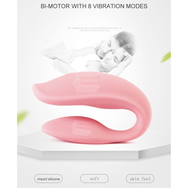 Wowyes 2U Kumandalı Çiftlere Özel 8 Modlu Titreşimli Şarjlı Pembe Vibratör